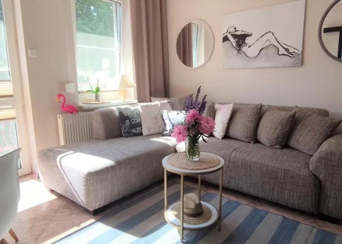 Im Apartment gibt es eine Küchenzeile mit einer Mikrowelle, einer Kaffee-/Teemaschine und einem Kühlschrank. Mit Ausstattung zur Kaffee- & Teezubereitung ausgestattet, bietet das Apartment den Gästen einen komfortablen und mühelosen Aufenthalt. Die Ferienwohnung Kolobrzeg Podczele 8A ist ein paar Schritte entfernt von der Bushaltestelle Podczele - Tarnopolska. Für Aktivurlauber werden Badminton angeboten.